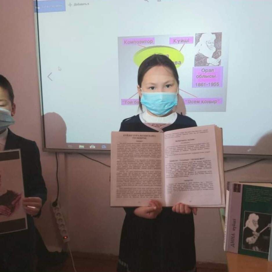 Мақсаты: батыс өңірінің халық композиторы Дина Нұрпейісова туралы толық мәлімет алу, өлеңдер оқу, күйді тындату арқылы оқырмандардың эстетикалық талғамын ояту, шығу тарихын әңгімелеу.